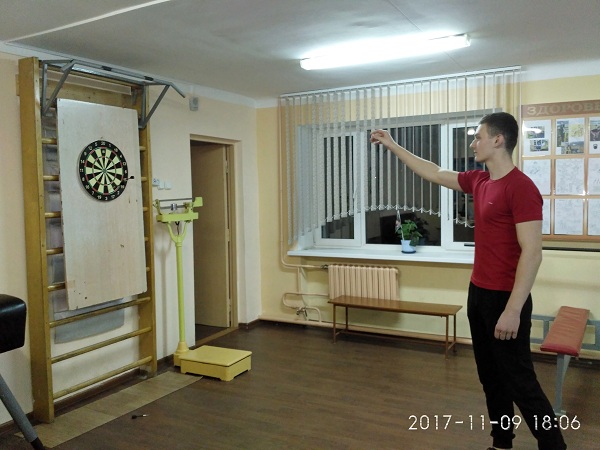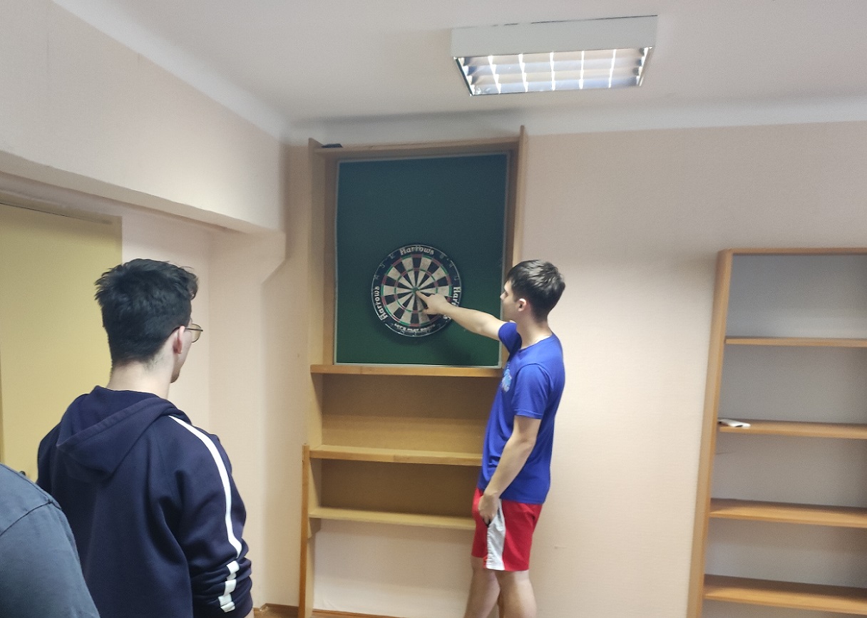 22 апреля прошли соревнования по дартсу среди обучающихся, проживающих в общежитии. Соревнования проводились по олимпийской системе – с выбыванием. В финал вышли Ращеня Евгений (ЭА-113) и Мандрик Павел (ОС-1). Набрав более 500 очков, победу одержал Ращеня Евгений. Финалисты были награждены грамотами и подарочными сертификатами на сумму в 30 рублей.