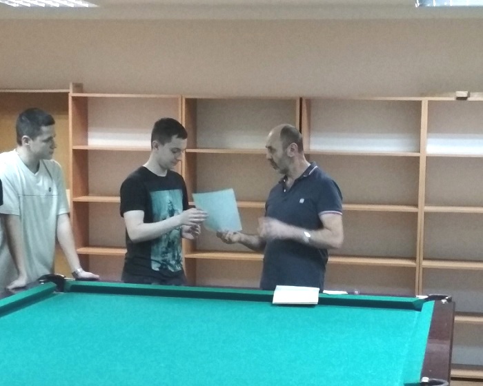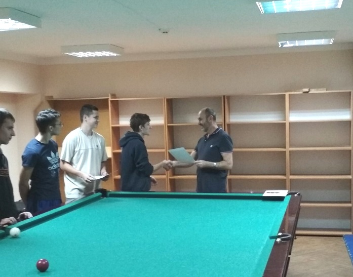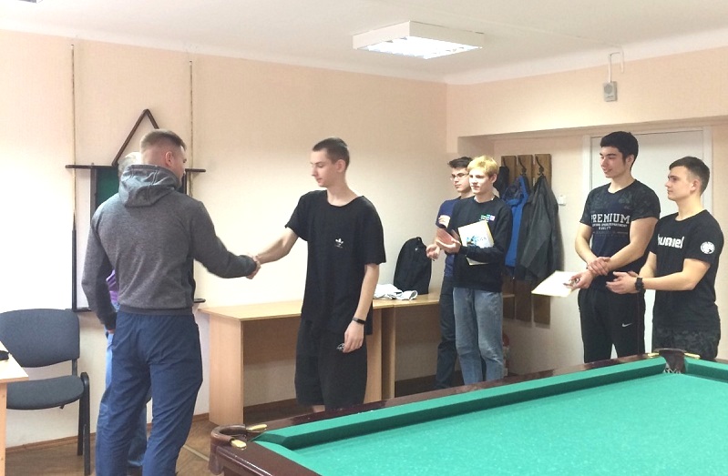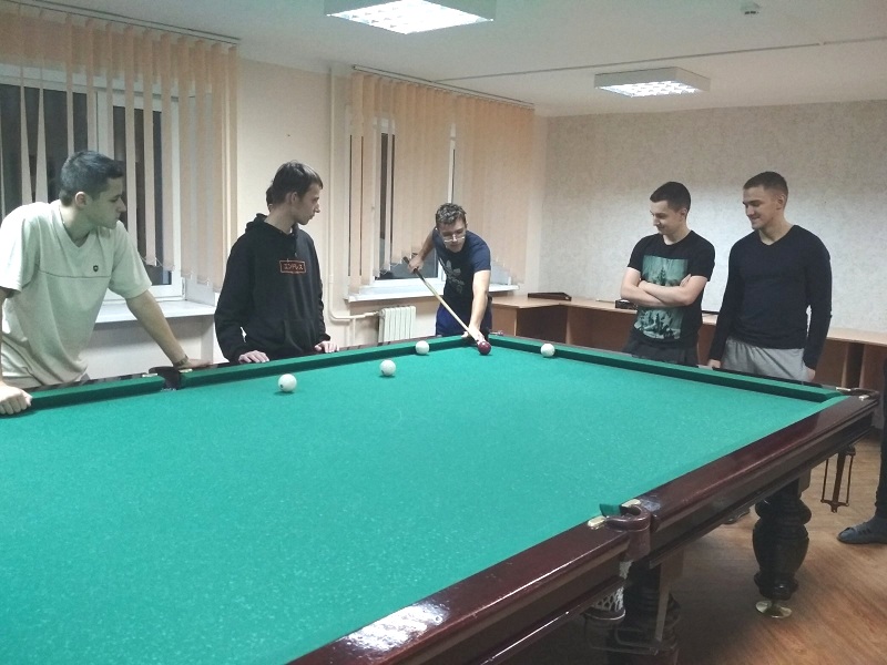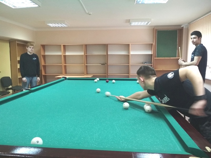 5 декабря в общежитии прошли соревнования по бильярду. Ребятам было предложено выявить сильнейшего в игре "Американка". Победителем стал Ращеня Евгений из группы ЭА-113.