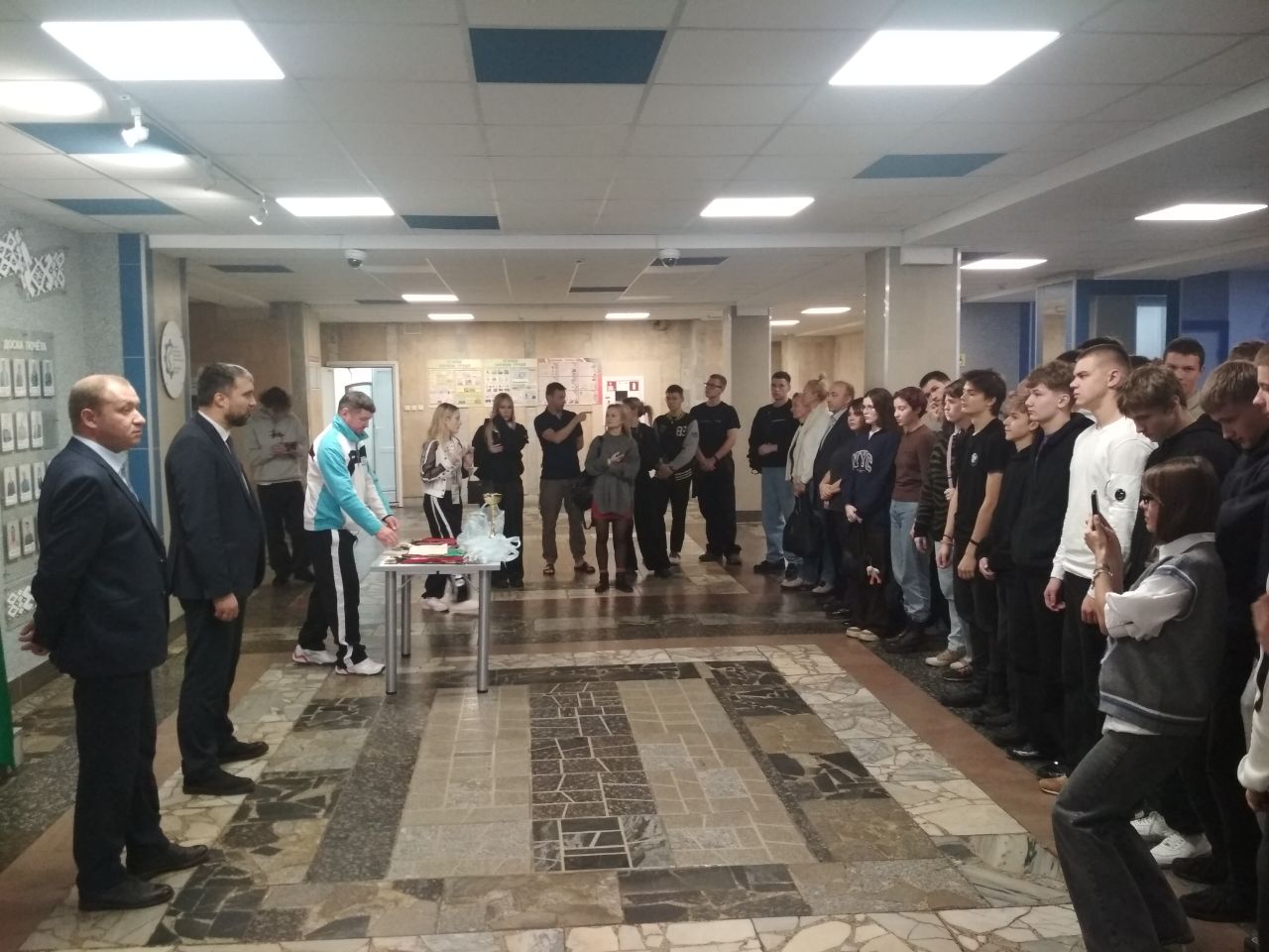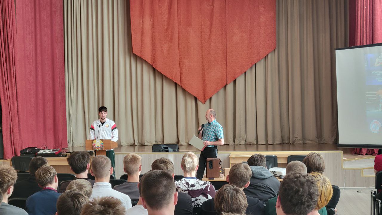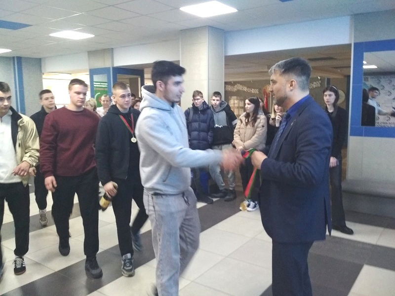 Во вторник в актовом зале колледжа состоялась встреча с членом Национальной сборной команды Республики Беларусь, чемпионом мира по тайскому боксу Фокиным Георгием, который рассказал учащимся колледжа о своей спортивной биографии и ответил на их многочисленные вопросы.