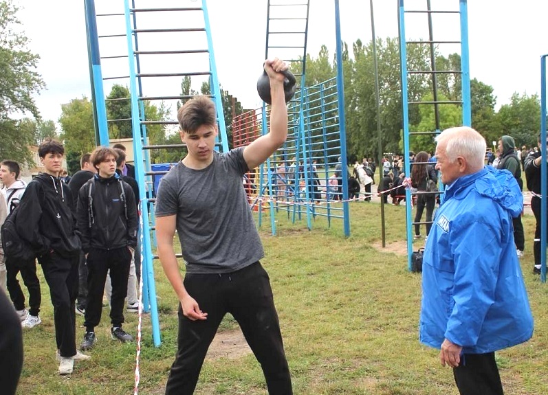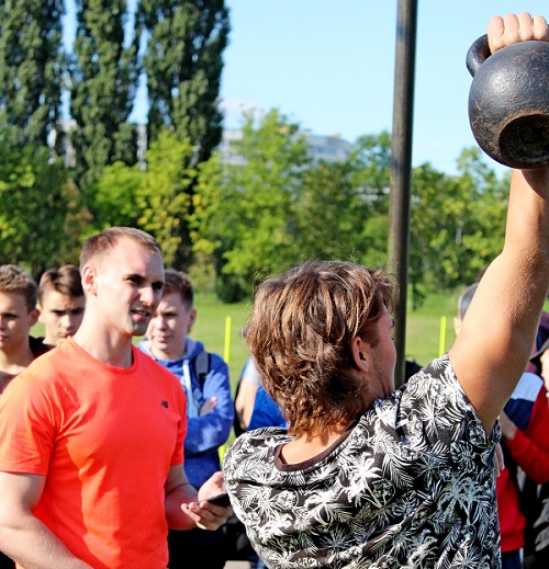 Также прошел мастер-класс по выполнению данного упражнения преподавателями ФК и здоровья: Стриженкова В.А. выполнила 10 рывков, Кисляк Г.Б. - 42 раза.