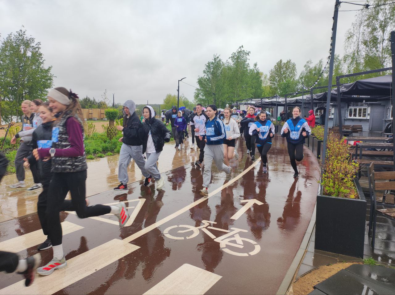 После торжественного открытия перед забегом все вместе сделали зарядку. Далее старт и бег на 3 км. После финиша всех ждал горячий чай, пирожки и гречневая каша. Каждый участник на финише награждался памятной медалью. И не смотря на то, что день выдался пасмурным и дождливым, все участники пребывали в бодром и весёлом настроении.